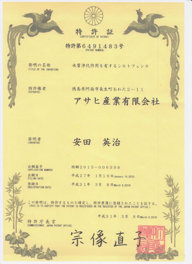 アサヒ産業の特許シルトフェンス
